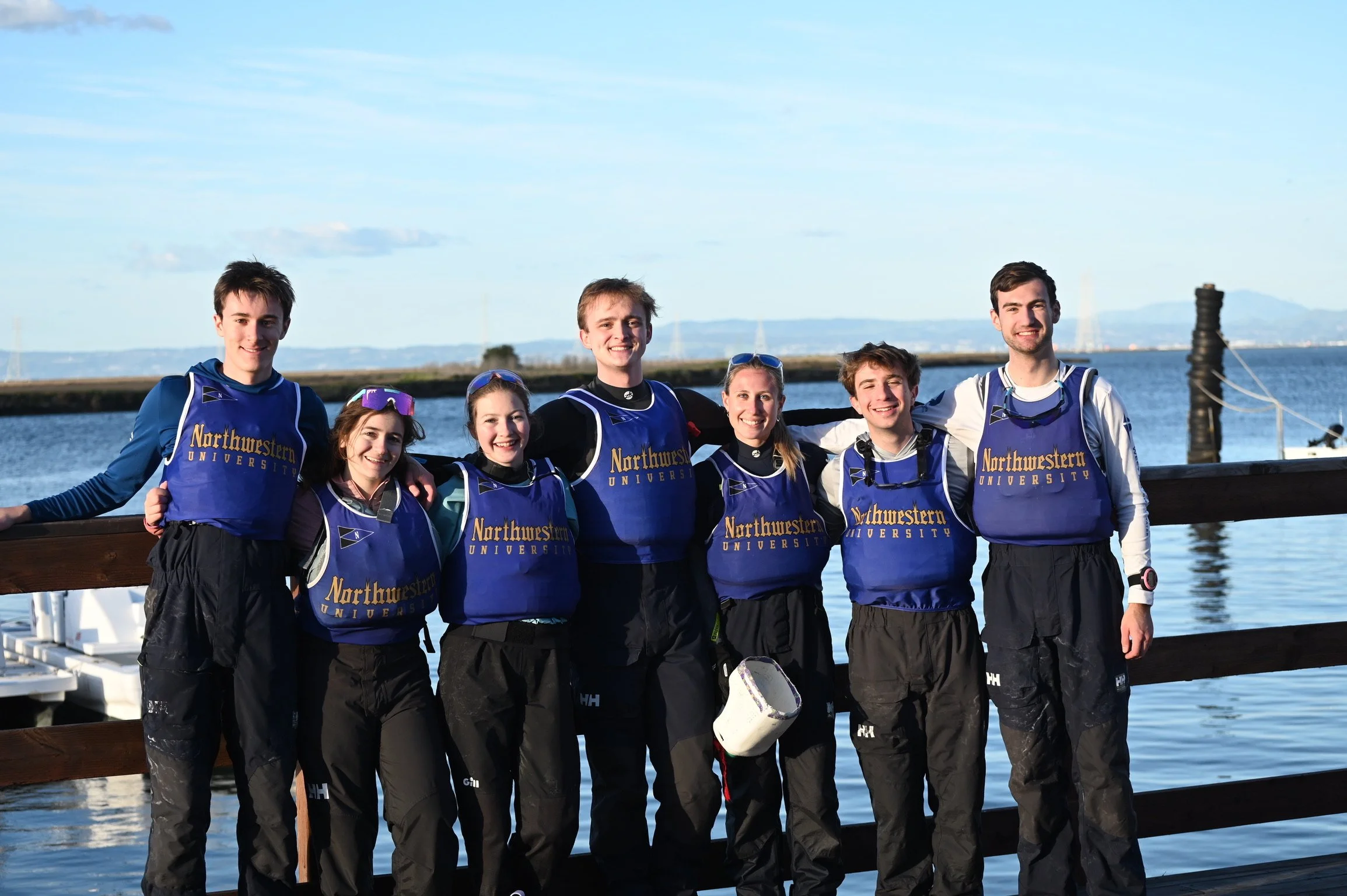 The weekend of February 21st and 22nd, seven sailors representing NUST went to team race at the Jeremy McIntyre Memorial Regatta hosted by Stanford! Conditions were sunny, with medium wind conditions on the first day and light to medium wind conditions on the second. And, the team had a great chance to practice working together on the water, as freshman Gavin Eskilson, first on the left, said “We couldn’t wait to get back on the water after a long winter. This was the first time our three boats have raced together as a team, and I was proud of how quickly we built chemistry on the water. Facing tough competition, we learned a lot, and I’m really excited to see what we can do in the spring.”